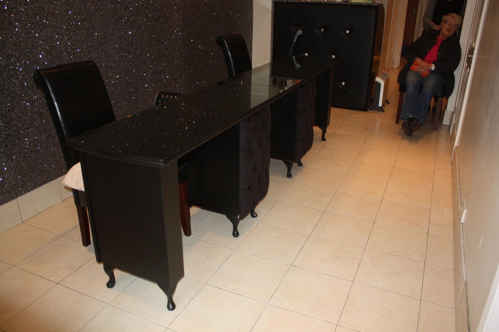 Комфортабельный маникюрный стол «Роза» предназначен для удобной работы двух мастеров. Большая столешница вместительная тумба, компактные ножки по бокам – все сделано для удобства работы. Выигрышным дизайнерским решением становится каретная стяжка, что придает модели больше изысканности и стиля.
