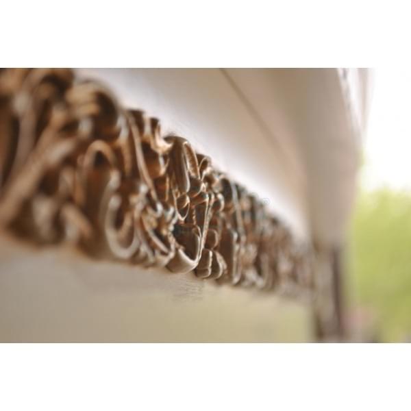 Портал «Людовик» - это сочетание мягкой роскоши французской классики и современных технологий. Классический орнамент подчеркнут золотой патиной, которая гармонирует с со снежно белым цветом самого изделия. Большое зеркало подсвечено двумя софитами, что делает парикмахерскую визуально светлее и просторнее. Каменная столешница придает изделию монументальность и грандиозность, а матовые витражные стекла вносят нотку романтики. Ножки портала Людовик стилизованы под ступени и фундамент. Все детали в несколько слоев вскрыты грунтом, краской и лаком. Множество ящиков позволит разместить множество необходимых в парикмахерской инструментов. Фурнитура исключительно от ведущих европейских производителей позволит порталу служить долгие годы, оставаясь таким-же удобным и функциональным.