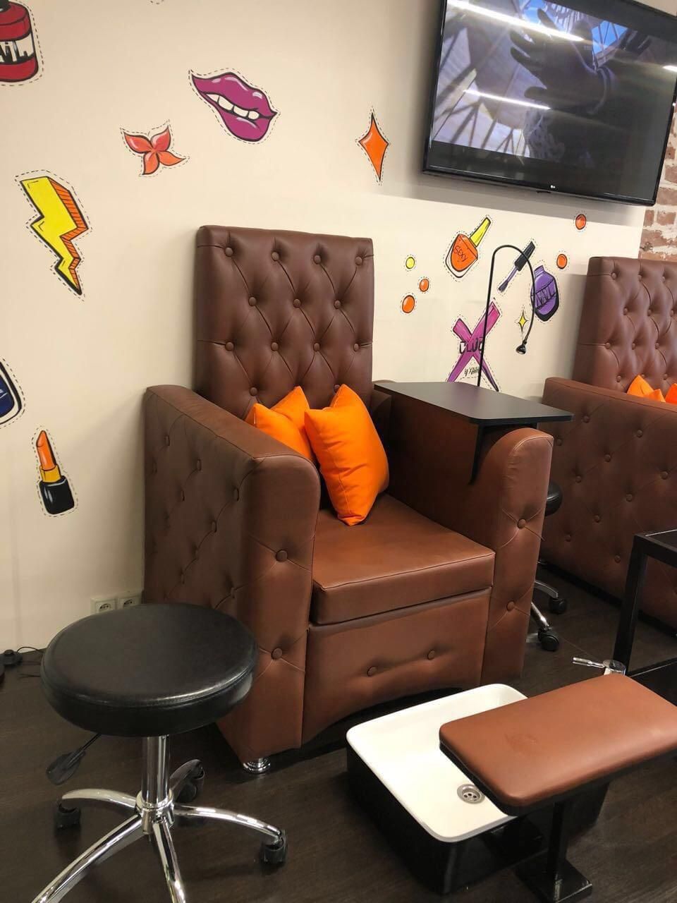 • высокая спинка изделия, что снимает нагрузку с позвоночника и позволяет клиенту расслабиться;