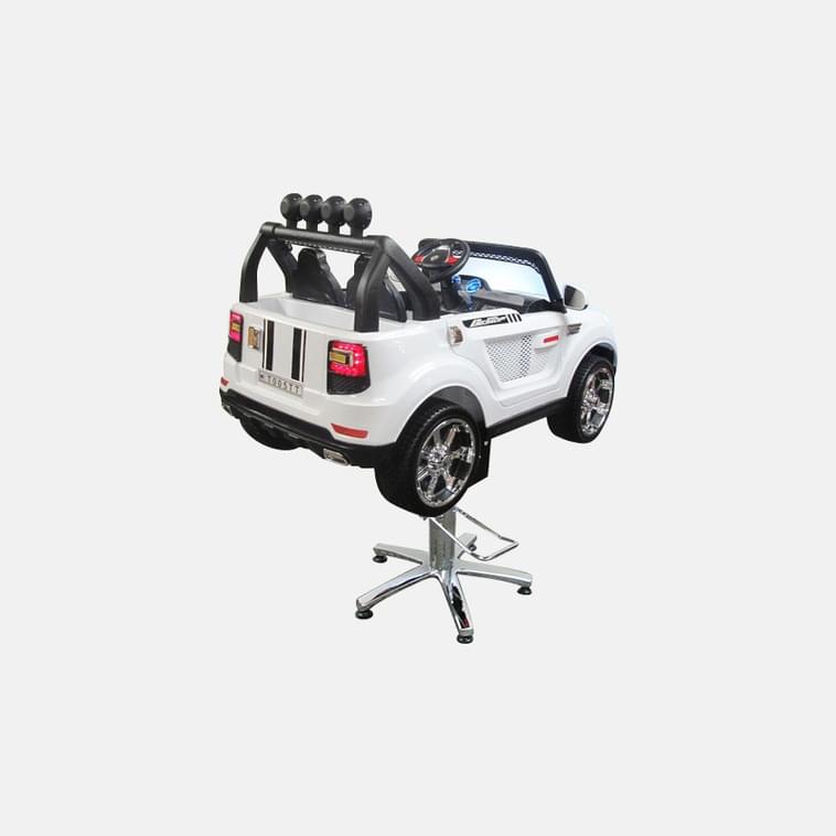 Детское парикмахерское кресло Авто БМВ Т005 ТТ. Цвет белый. На гидравлике. Электромобиль питается от 6 v аккумуляторной батареи. Машинка оснащена светящимися фарами, сигналами, музыкой и ремнем безопасности. Размер машинки 130*68*42 см.