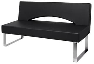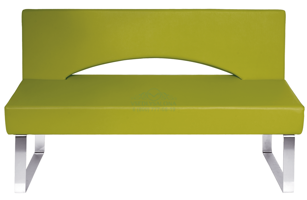 Диван для ожидания прямоугольной формы, мягкие элементы обтянуты искусственной кожей высшего качества, на плоских металлических ножках.