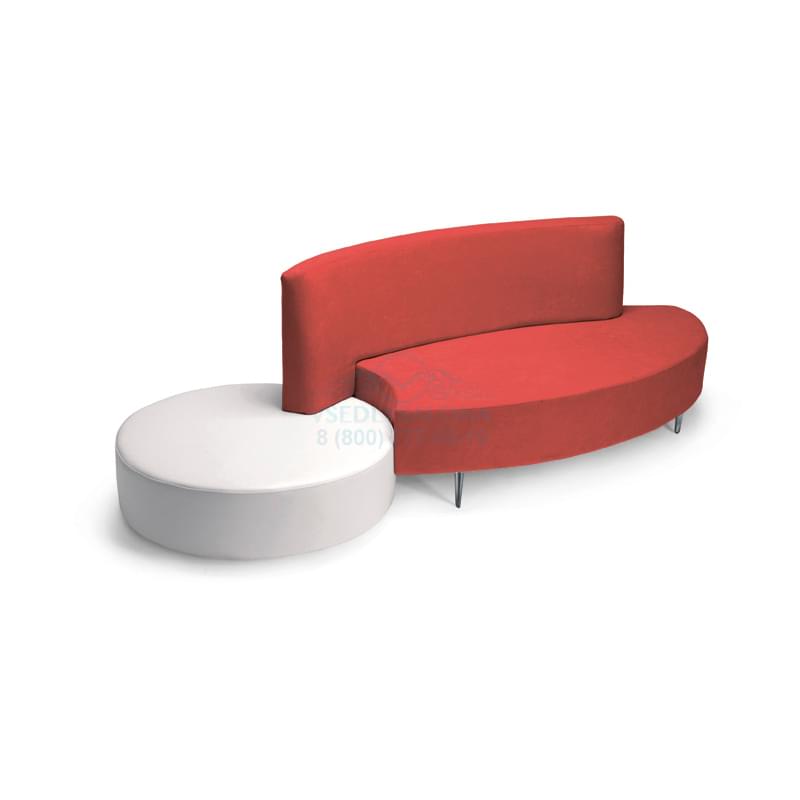 Диван для холла двойной с пуфом на 2-3 места. Левосторонний или правосторонний вариант. Материал - кожзам, ножки - алюминий.