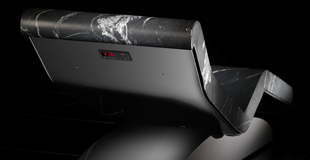 Ложе с подогревом, выполненное из монолитного мрамора станет не только роскошным дополнением любого СПА-салона, но и его функциональной единицей. При его производстве применяется эксклюзивная СПА-технология класса «люкс». Ложе производится в Италии с применением цельной мраморной глыбы. В основе действия ложа лежит длинноволновое инфракрасное излучение, целебным образом воздействующее на человеческий организм. Оно помогает снять боль в спине и шее, избавиться от синдрома хронической усталости и стресса, сбросить лишние килограммы, улучшить состояние кожи и сделать ее более здоровой и молодой. Модель отличается футуристическим дизайном и эргономичностью форм. Для заказа доступно несколько вариаций цветовых решений – черный, бежевый, молочно-белый. Нагрев поверхности ложа регулируется при помощи высокотехнологичной системы многозонного прогрева. В этой модели наилучшим образом сочетаются традиции и современные технологии. Ложе имеет мобильный шезлонг и цифровой дисплей.