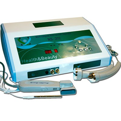 Косметологический аппарат ультразвуковой терапии "NS-202" - предназначен для глубокой ультразвуковой очистки, микромассажа кожи, а также проведения фонофореза, введения лекарственных и косметологических препаратов  в кожный покров. Прибор имеет 2 режима работы: постоянный и импульсный, который применяется как в ультразвуковом пилинге, так и в ультрафонофорезе. Максимальная рабочая частота лопатки составляет 26-28 кГц, частота ультразвукового излучателя до 1.2 МГц. Ультразвуковой скрабер данной модели имеет отличительное качество выполнения процедуры, надежность и приятный внешний вид.