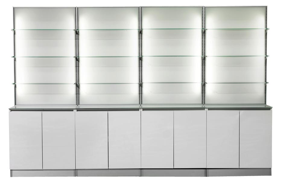 Модульная система лаборатории/витрины "R-MODE" - это оригинальный дизайн, удобство и функциональность. Каркас лаборатории выполнен из белого матового ламината, цоколь алюминиевый. Напольные тумбы оснащены столешницей из прочного стекла.