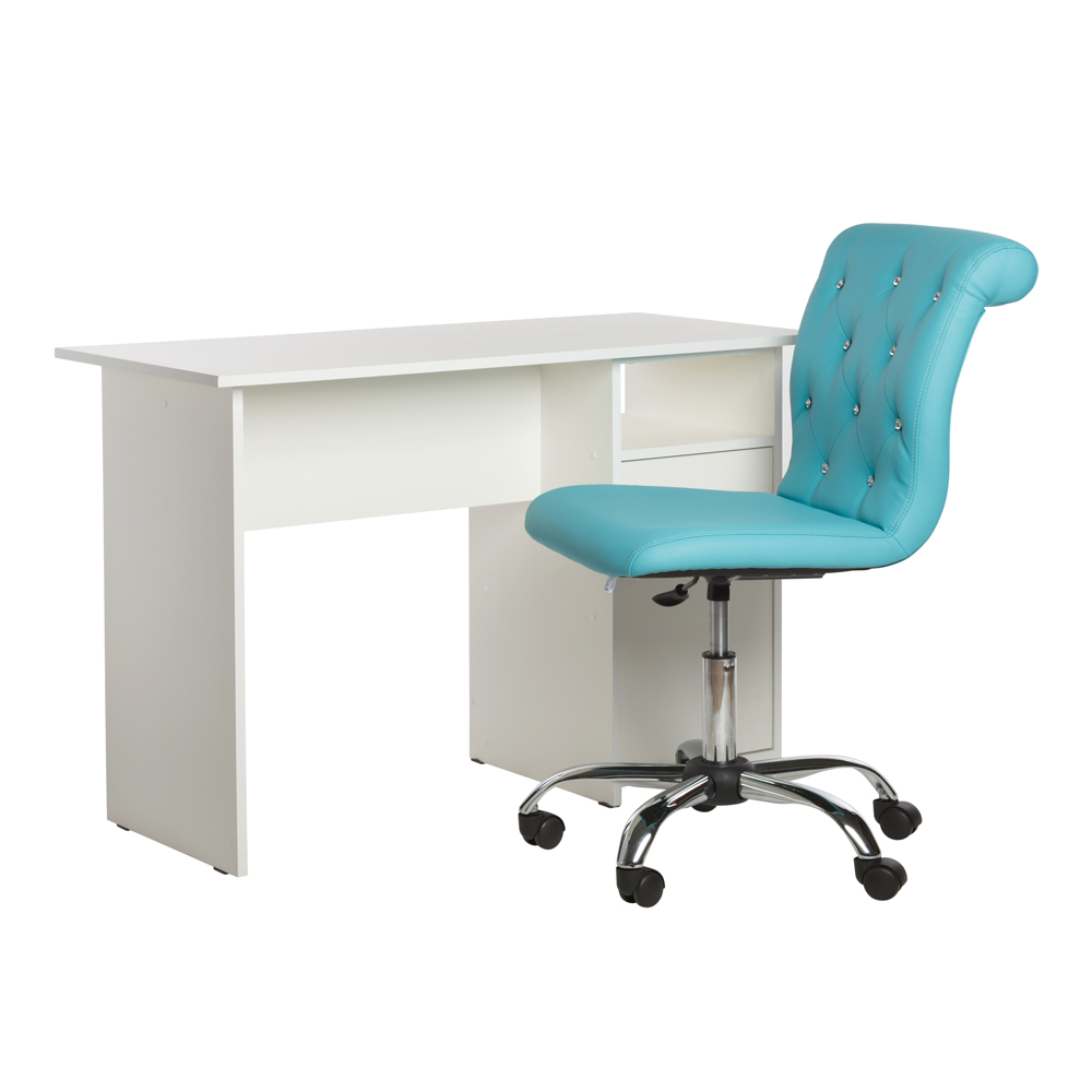 Стол однотумбовый с одной распашной дверью. Между столешницей (толщина 16 мм) и ящиком ниша сквозная. Фасад двери – вкладной. Опора столешницы – нерегулируемая. Опоры тумбочки – нерегулируемые. Фурнитура – ручки скоба (хром/никель).