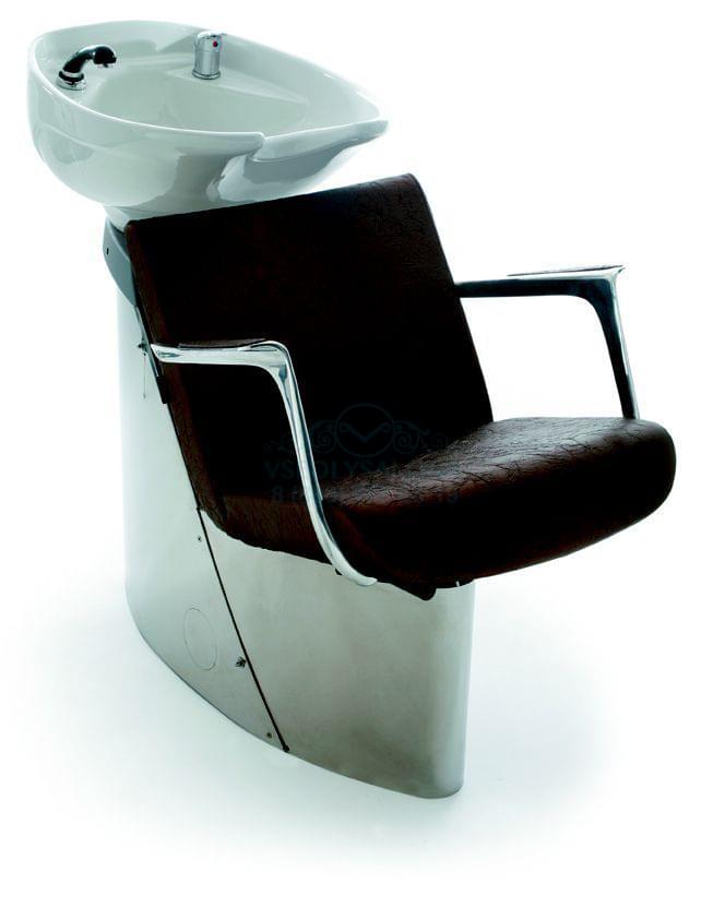 Мойка с креслом, на прочном каркасе из полированной стали. Мойка комплектуется глубокой керамической раковиной белого цвета с регулировкой угла наклона, комплект смесителя с хромированной лейкой душа. Мягкие элементы кресла обтянуты искусственной кожей высшего качества, подлокотники изготовлены из хромированного металла. Возможна комплектация с черной раковиной. Размер (ДхШхВ):135х57х107