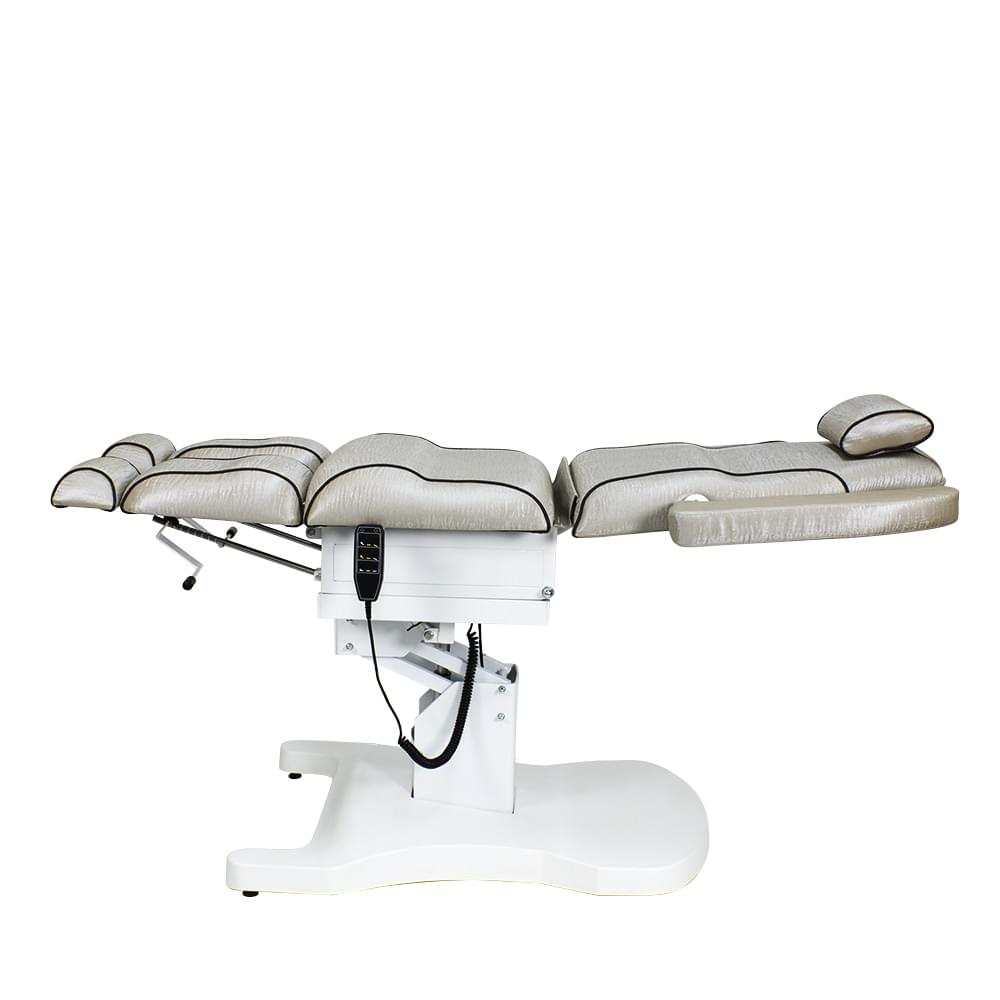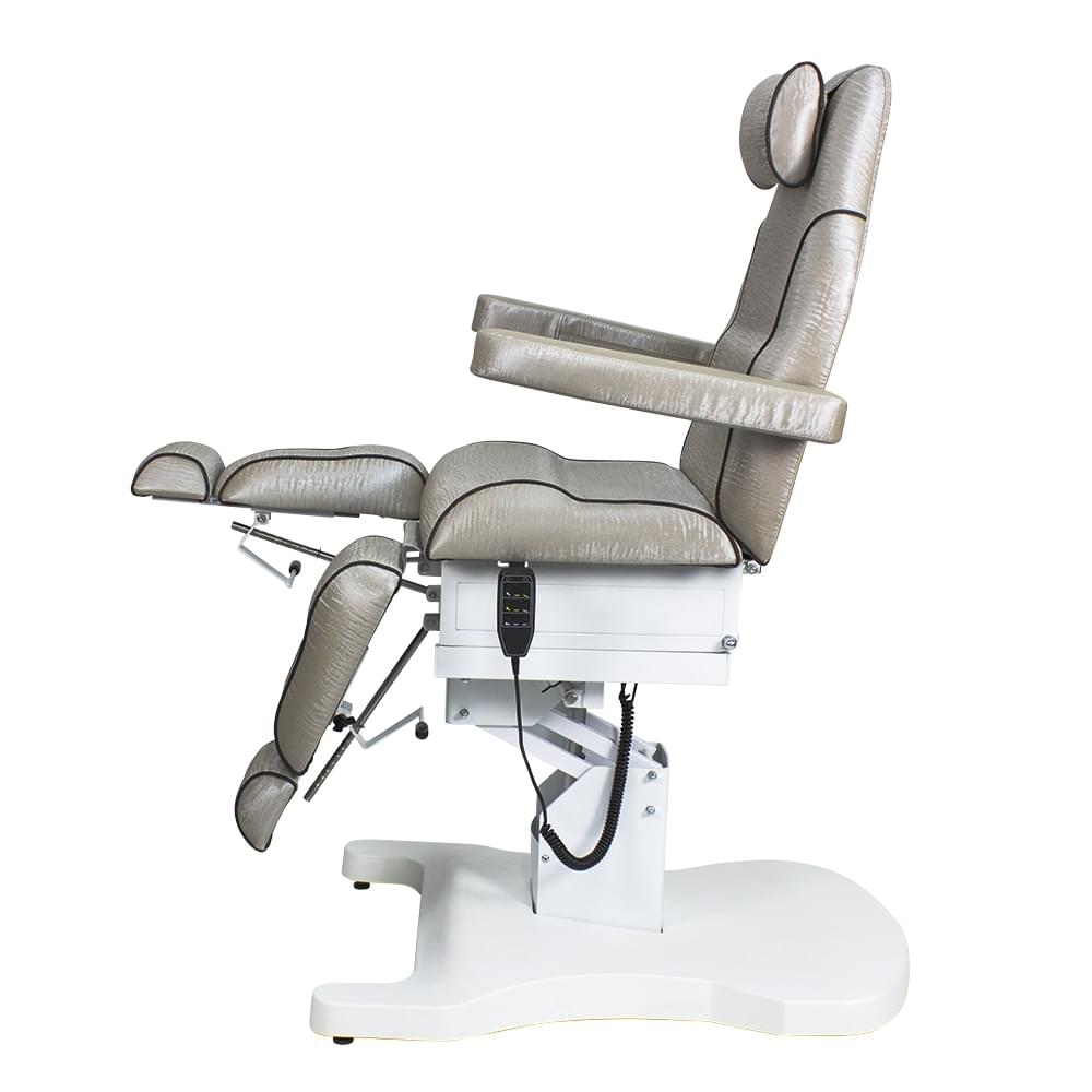 В кресле предусмотрена высокая спинка и подголовники, есть подлокотники, подушки, выступы для ног. Регулировать высоту и наклон можно при помощи пульта управления. поэтому ваши клиенты будут чувствовать себя хорошо даже при долгих процедурах.