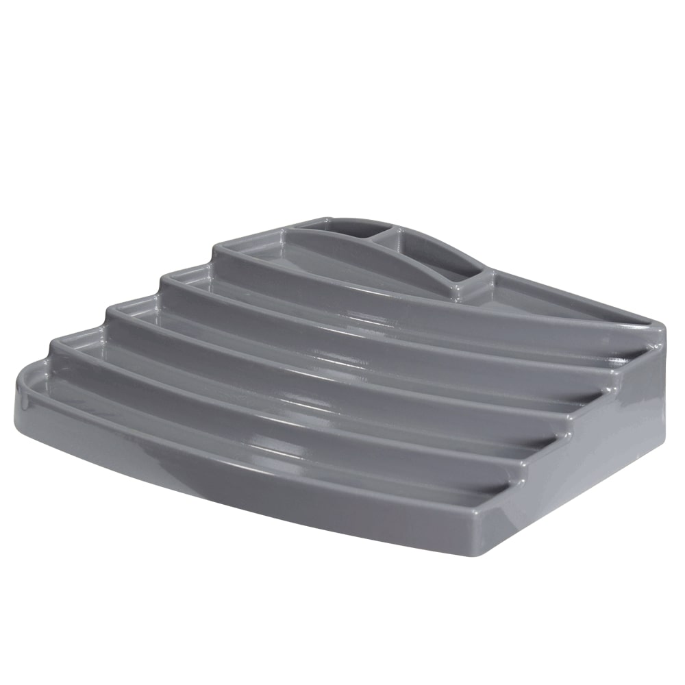 Пятиярусная подставка под лаки – это не только удобный аксессуар, но и стильный предмет декора. Она выполнена из качественного прочного пластика, устойчивого к воздействию косметических и дезинфицирующих средств. Подставка состоит из пяти полочек, размещенных на разной высоте, с защитными бортиками для удобного расположения лаков. На ней можно разместить достаточно большое количество лаков и все они будут хорошо видны. С подставки можно свободно взять любой лак и поставить его обратно, не опрокинув остальные. Это сделает процесс выбора подходящего цвета комфортным и приятным.