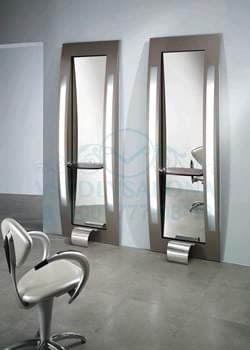 Зеркало парикмахерское с подсветкой, основа металл, полка ламинат или дерево, варианты цвета по образцам.
