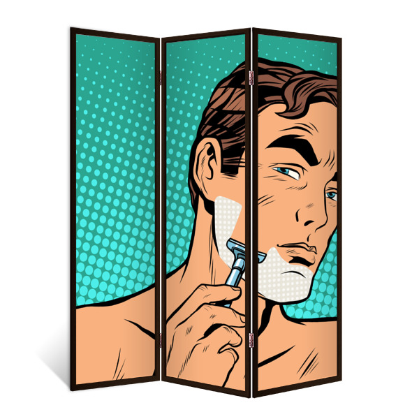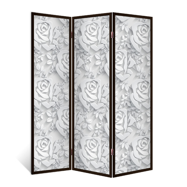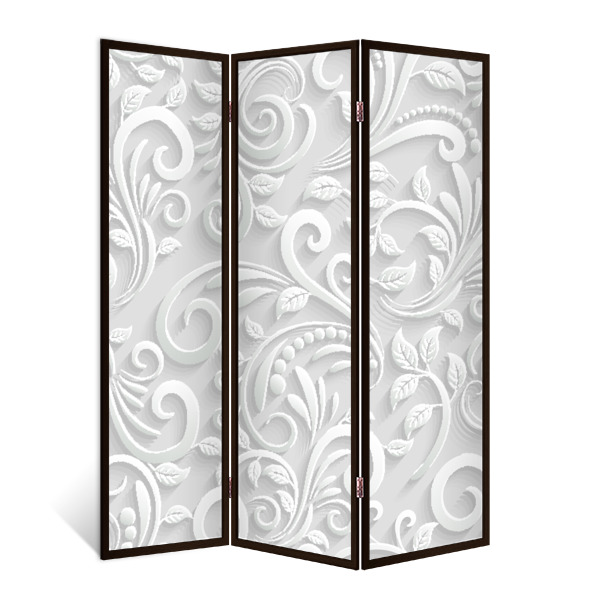 Ширма-перегородка имеет непрозрачный деревянный каркас из нескольких створок.