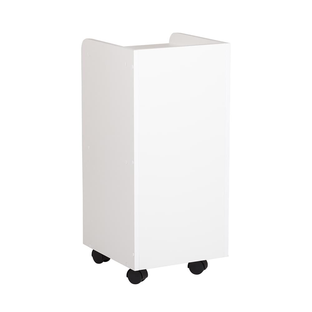 Тележка представляет собой тумбу на колесных опорах с двумя открытыми отделениями.