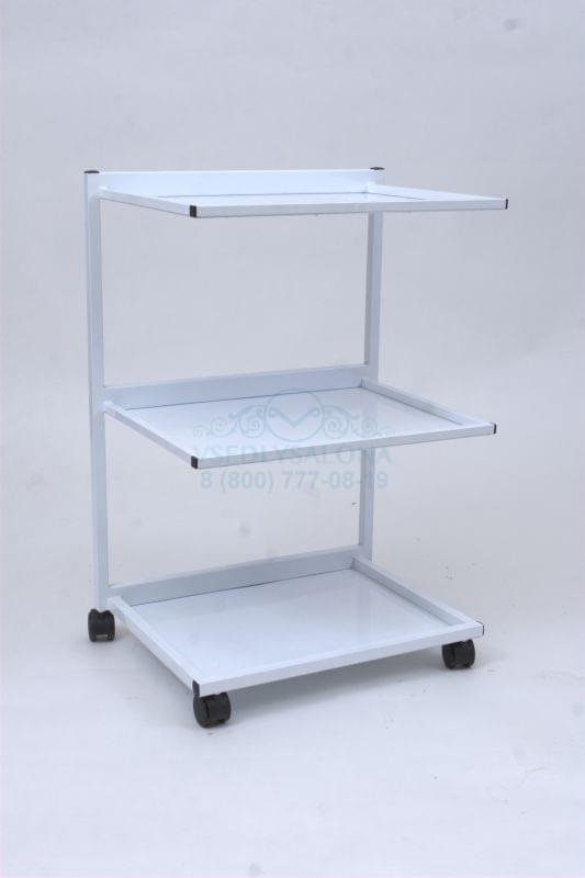 тележка косметологическая, металлокаркас порошковой окраски — цвет белый, черный, под бриллиант, полочки и ящик ЛДСП — цвет на выбор, оснащена тройником с удлинителем, на колесах.