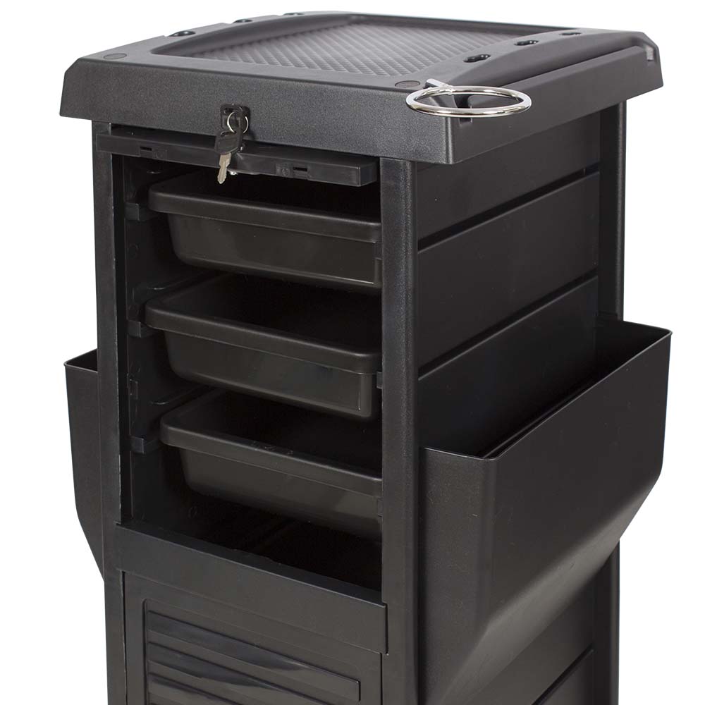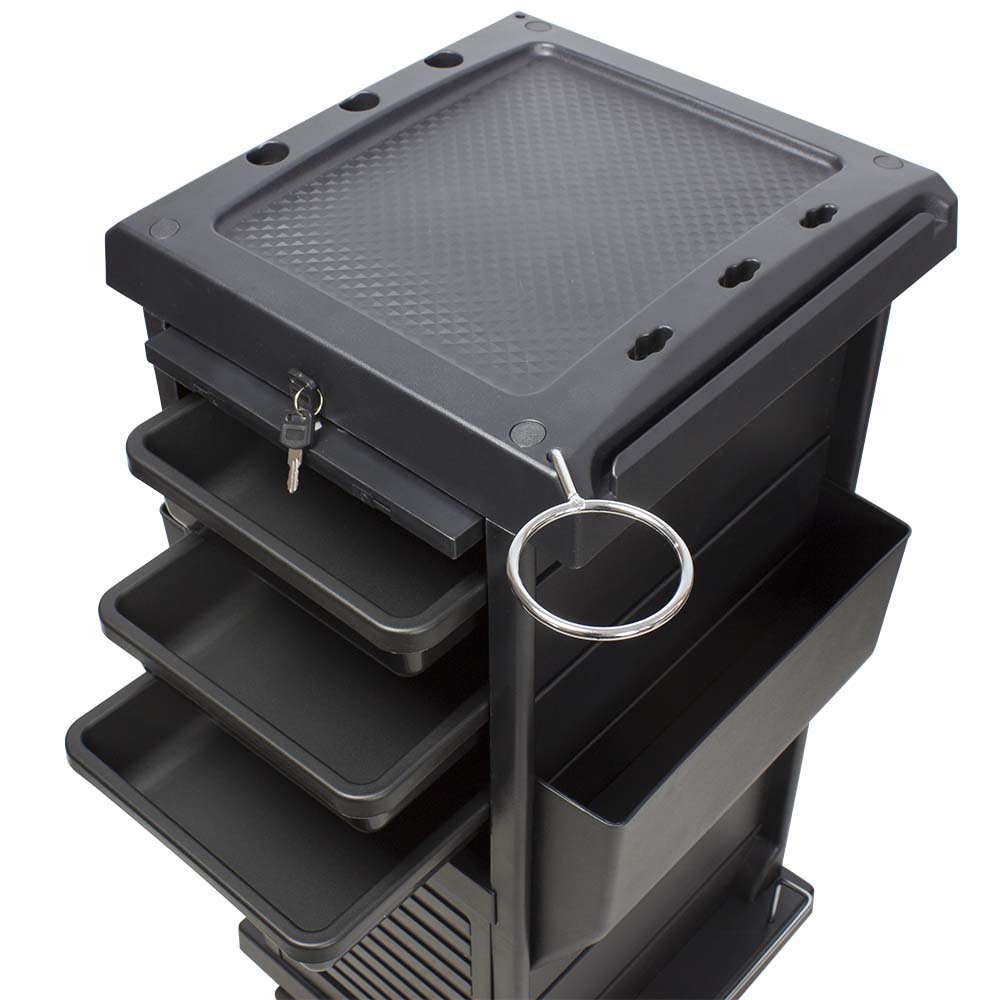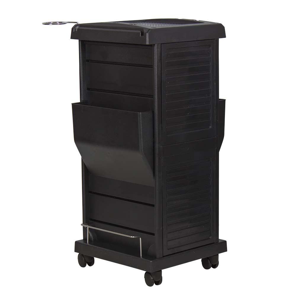 Снизу с обеих сторон парикмахерская тележка "Т-29" имеет держатель для каталогов и других демонстрационных материалов. Материал:ударопрочный пластик черного цвета