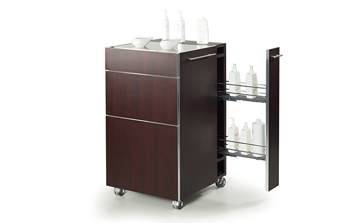 Многофункциональная тумба «T-VALE» используется для хранения различных аксессуаров, инструментов и средств. Благодаря минималистичному дизайну она впишется в любой интерьер. При производстве используется натуральное дерево и хромированная сталь.