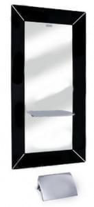 Зеркало парикмахерское одностороннее прямоугольной формы, крепление к стене. Рама выполнена из черного или белого стекла, металлическая столешница.