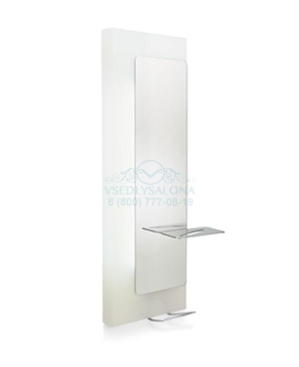 Зеркало парикмахерское, одностороннее, крепление к стене. Металлическая хромированная столешница и подставка под ноги, рама из белого оргстекла с подсветкой. Размер: 240х93х44